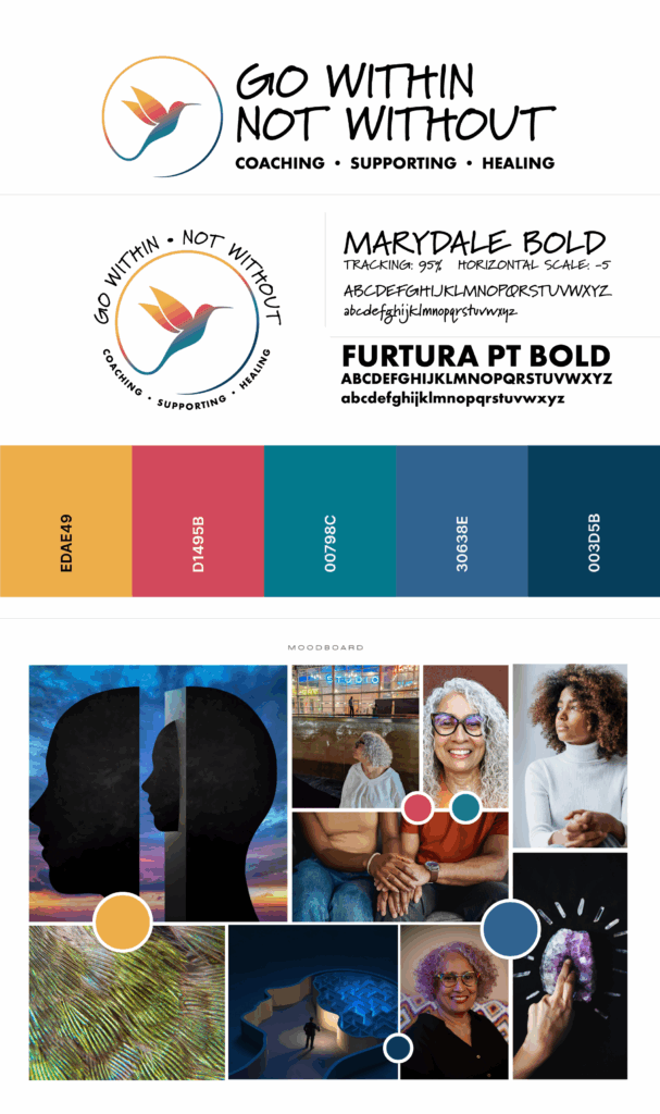 Brand storytelling and visual identity for Go Within Not Without, a mindfulness and self-growth brand. This project focused on aligning purpose-driven messaging with calm, intentional design.